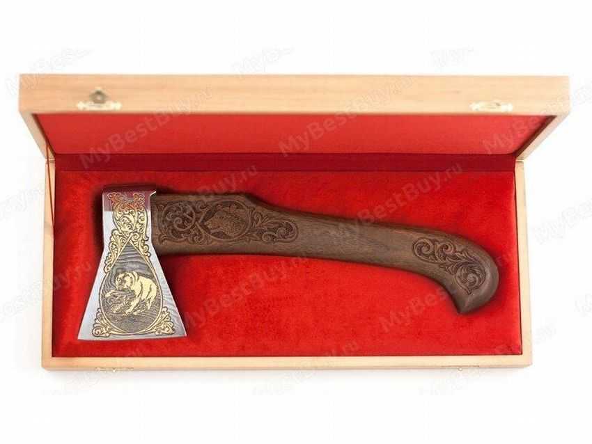 Подарочный топор, с красивым оформлением рукояти с изображением медведя.
