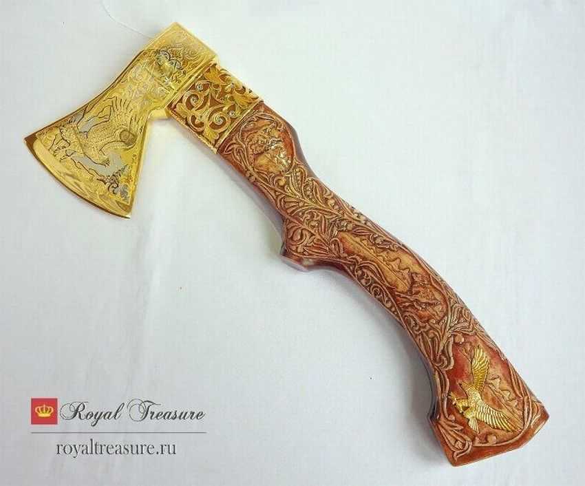 Удивительная модель топора, словно сливается с рукоятью в резьбе и позолоте.