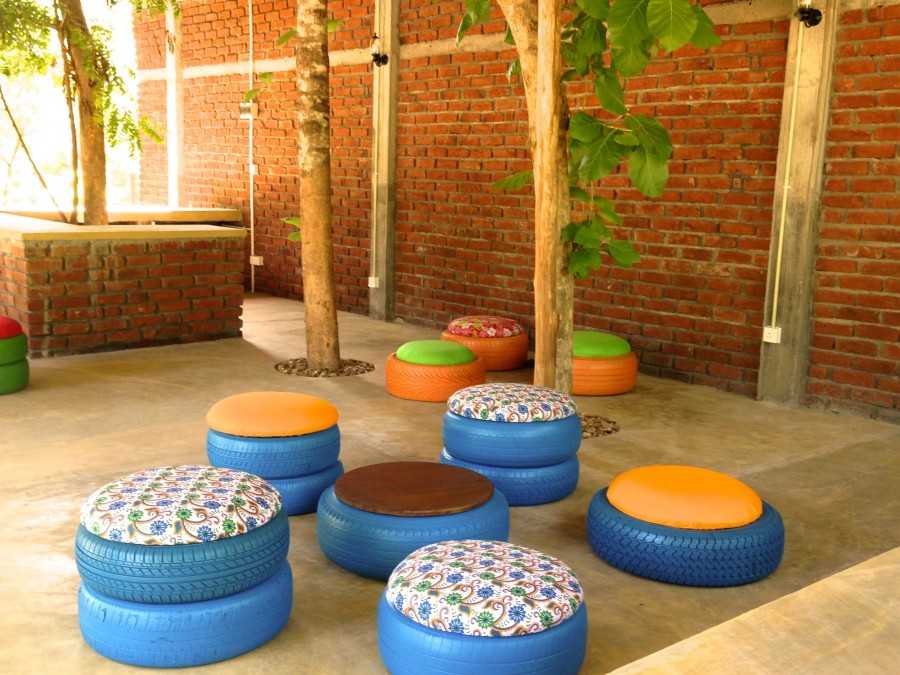 Как ни странно, но автопокрышки могут играть роль не только оригинальных украшений для ландшафта дачной территории, но стать и действительно практичной мебелью. Один из таких примеров мы уже рассмотрели в начале статьи, но тут нам попалось еще несколько очень удачных идей.