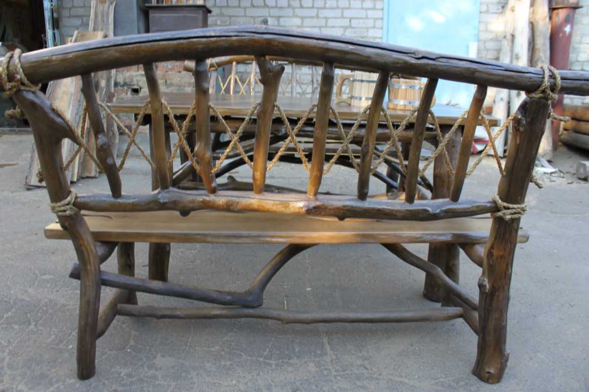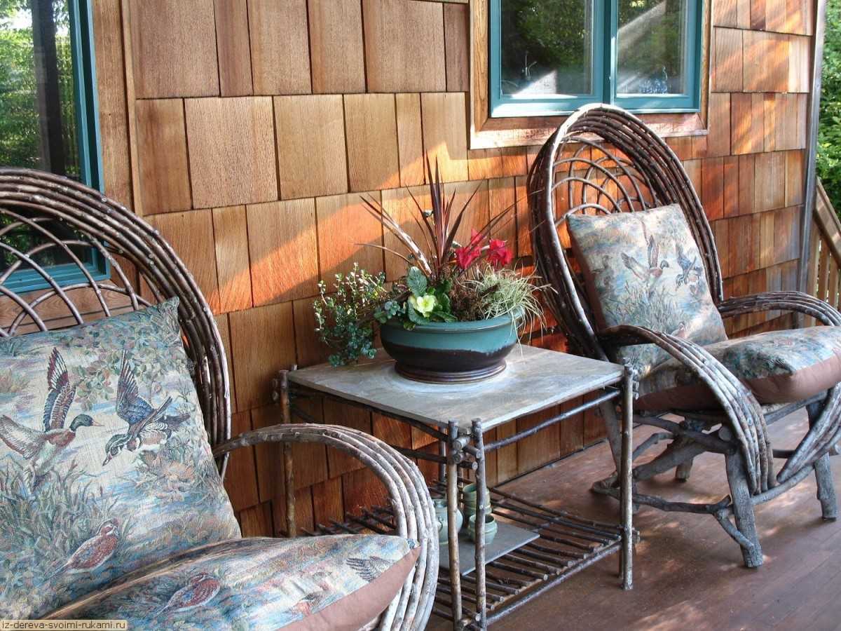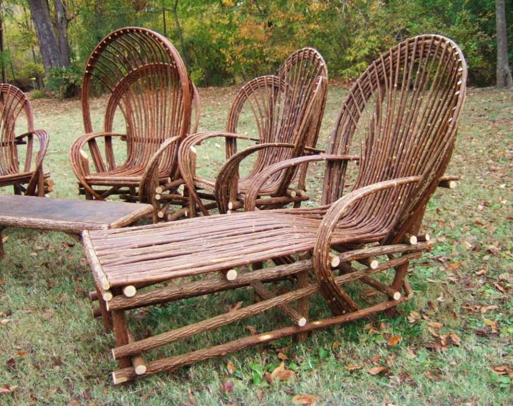 В качестве материала можно использовать не только крупные куски деревьев: корни, ветки, но и прутья. Из лозы плетут отличную легкую мебель.