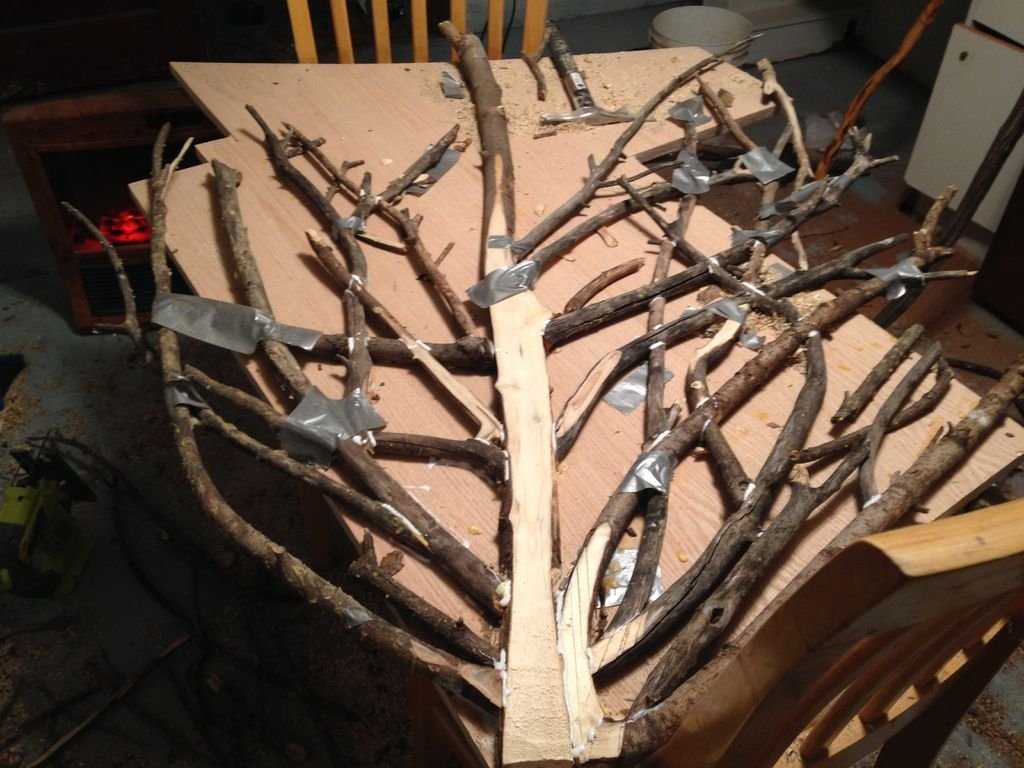 - Перед началом сборки, после подгонки деталей по размерам, необходимо подготовить торцы веток и корней. В идеале им необходимо придать вогнутую форму.