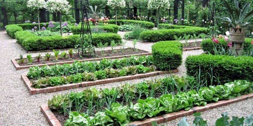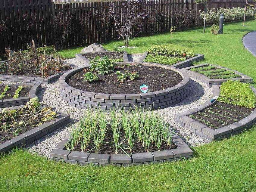 Красиво расположенные небольшие грядки придадут огороду привлекательный вид.