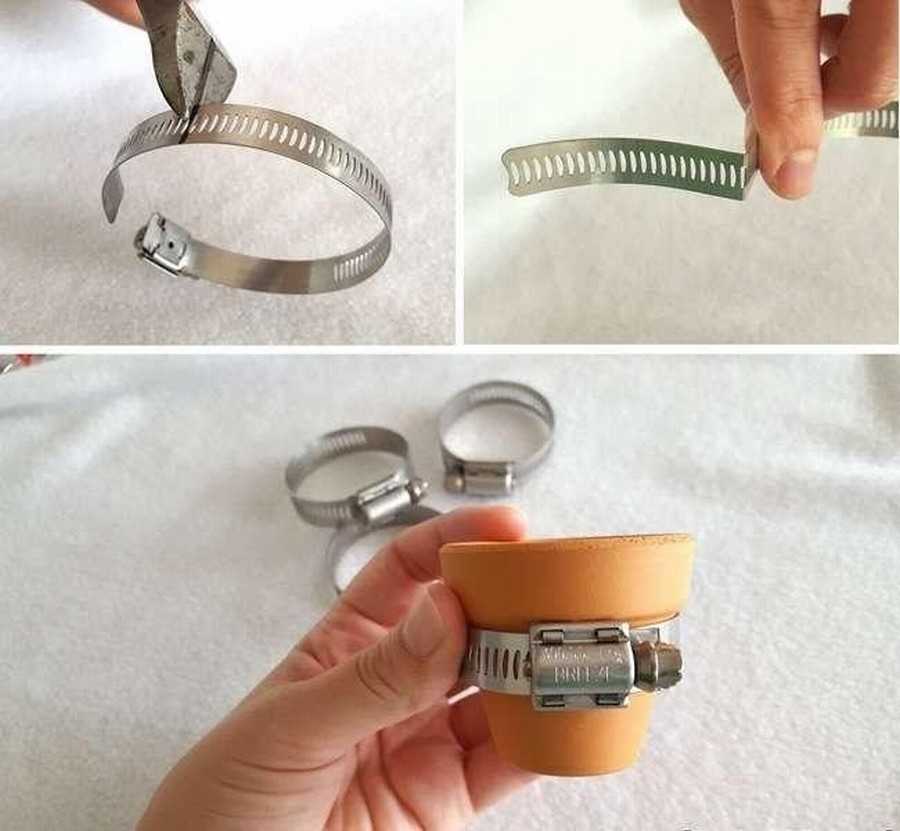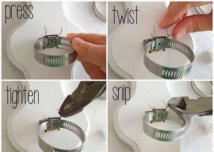 Металлические хомуты фиксируются на доске при помощи вязальной проволоки: