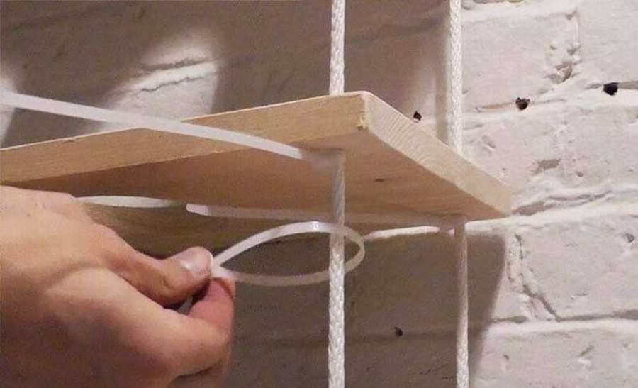 Концы веревок связываются вместе и крепятся к заранее выбранной конструкции: