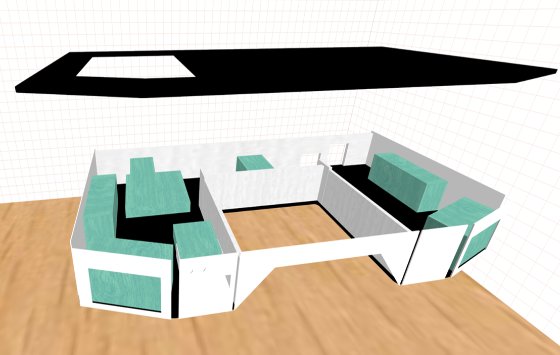 После этого нужно замерить пространство для стола, на эскизе отметить необходимые: высоту, длину стола вдоль стены, ширину стола внутрь комнаты.