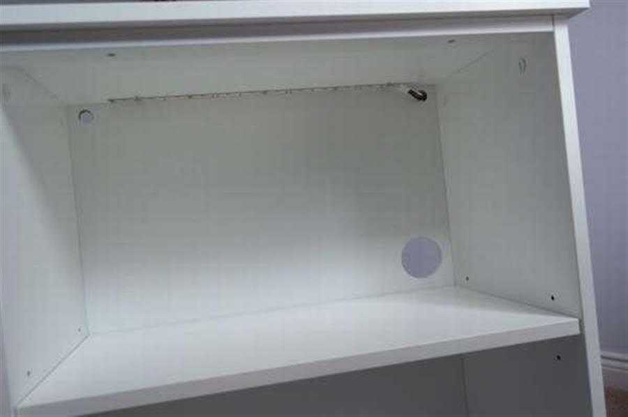 - для начала в стенке бокового и центрального типа делаются отверстия для нижней полки;
