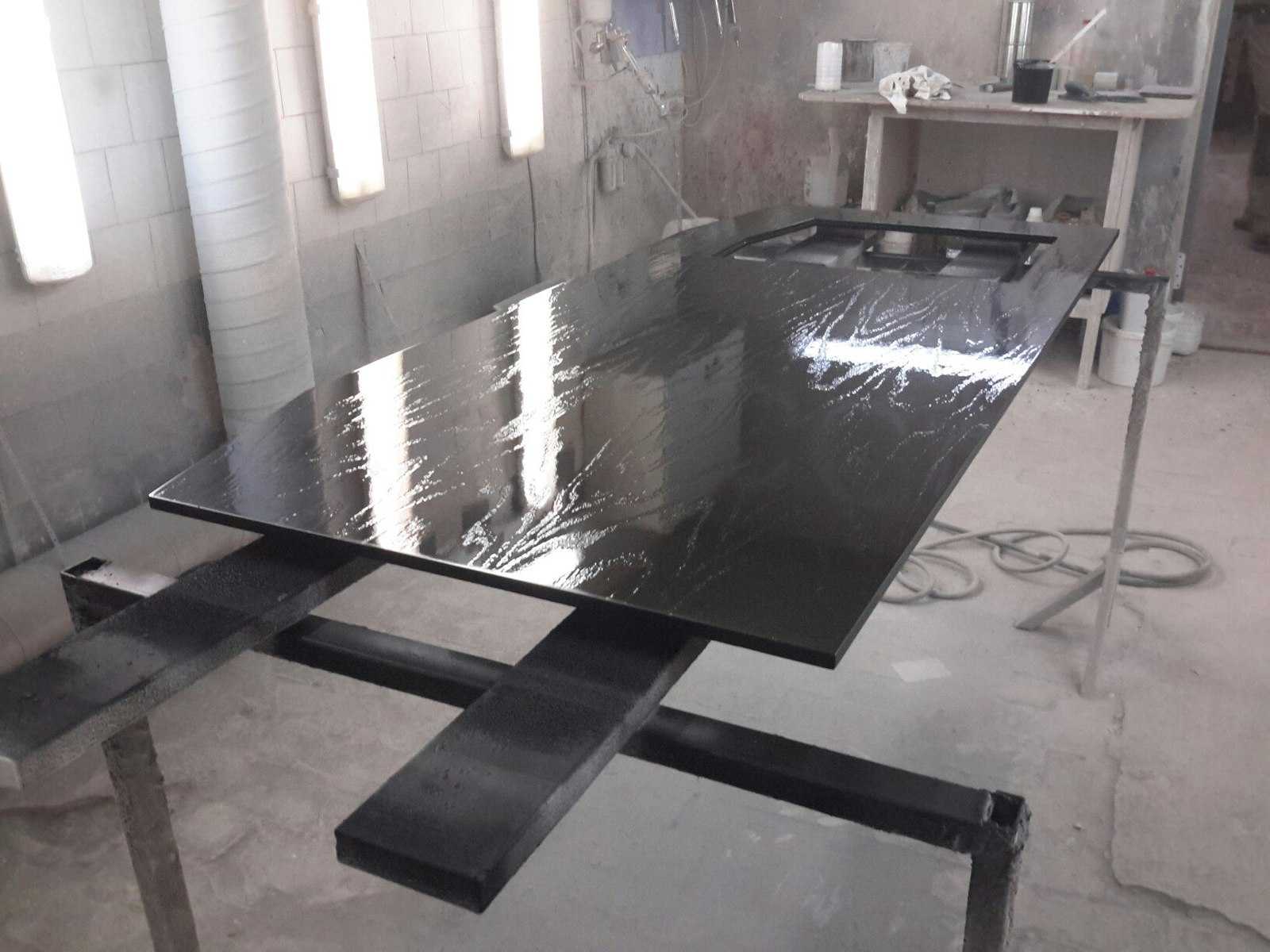 - Поддельные алмазов. Не впитывает влагу, долго держится, легко очищается от грязи. Основные недостатки: дороговизна, большой вес. Акриловый стол на кухне следует беречь от острых предметов, горячей посуды.