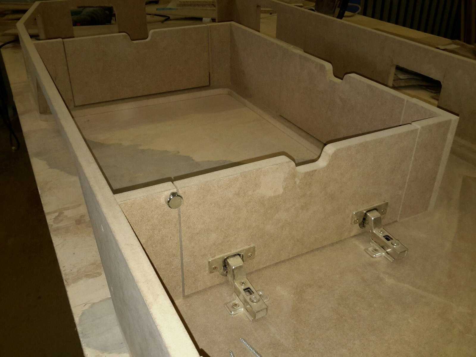Как вариант, можно использовать ламинированную МДФ. Она по своим свойствам близка к ЛДСП, но имеет меньшую фракцию наполнителя, благодаря чему менее хрупкая и не настолько склонна к расслоению при завинчивании крепежных элементов. Принципы олбработки и сборки этих материалов практически аналогичны.