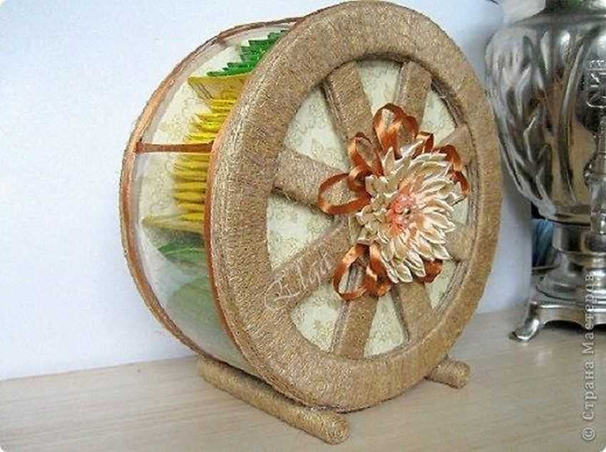 - Бортики корзины отделайте пакетиками чая или кофе, сажая их на двухсторонний скотч или термоклей.