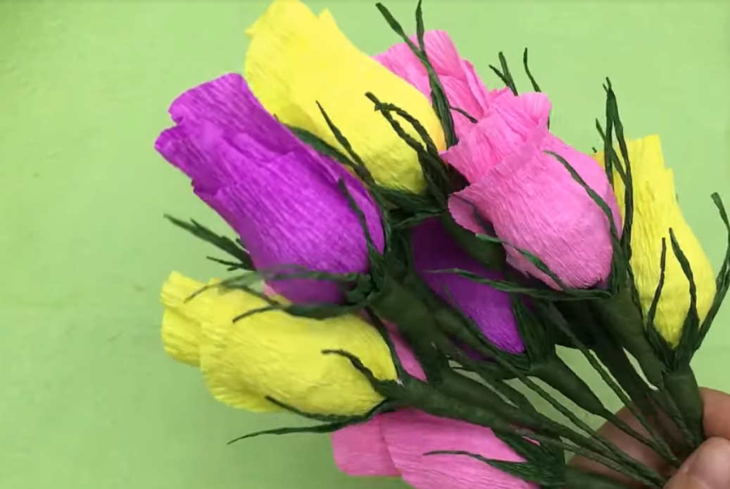 Пышный букет цветов из гофрированной бумаги отличный подарок