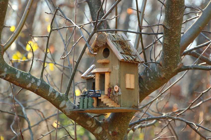 Некоторые виды птиц для размножения нуждаются в условиях, близких к тем, которые преобладают в дуплах. К ним относятся синицы, мухоловки, скворцы или воробьи. Тем не менее, в садах, деревья, как правило, здоровы и без отверстий. Поэтому дупла мы можем с успехом заменить скворечниками. Специальные домики мы можем, приобрести или сделать своими руками. Формы и узоры, могут быть настолько оригинальные, что представляет собой настоящее украшение сада. Если дать волю фантазии и украсить сад небанальными домами