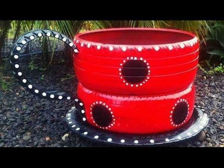Практически каждый дачник стремится к тому, чтобы максимально интересно украсить свой участок. В ход идут разнообразные сорта цветов и растений, оригинальные идеи ландшафтного дизайна. И для этого вовсе не обязательно использовать дорогостоящие материалы и тратить много времени. Украсить участок можно своими руками с помощью подручных средств. Вот например, с помощью покрышек, которыми можно стильно и очень забавно разнообразить пустующее место.