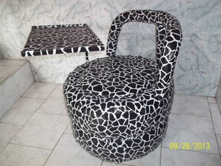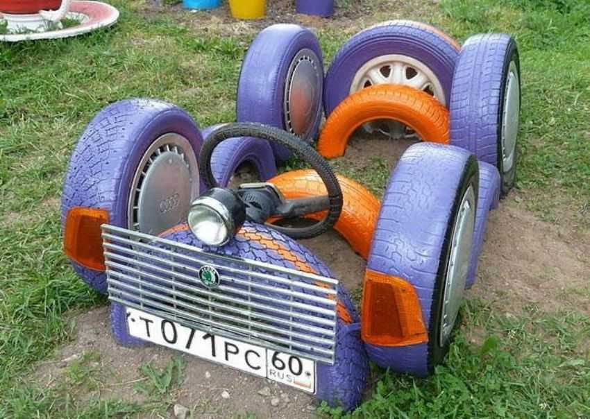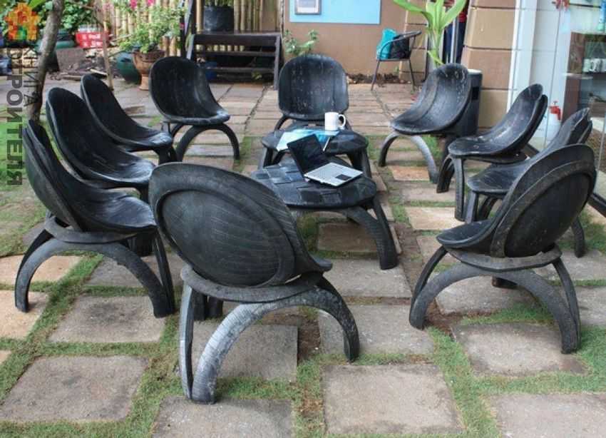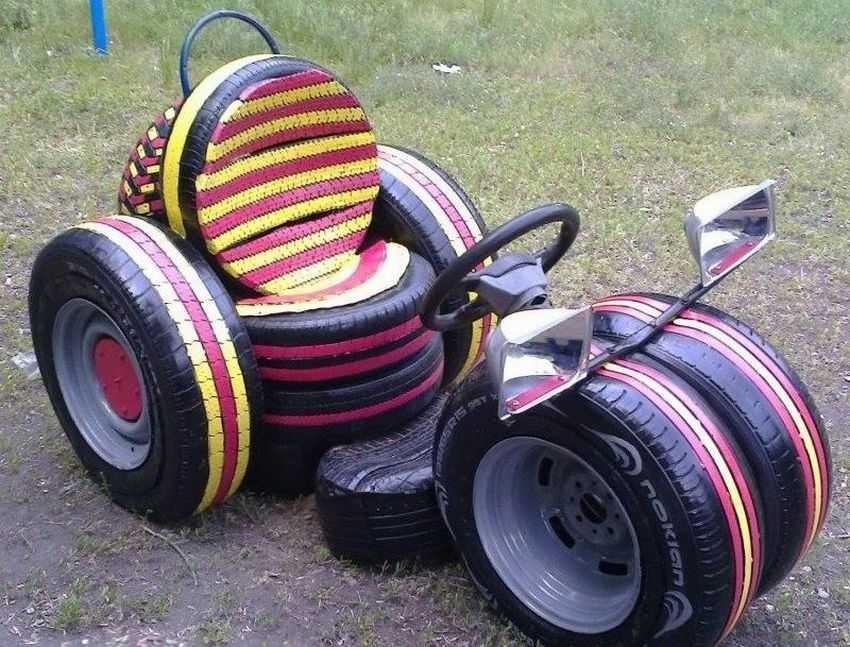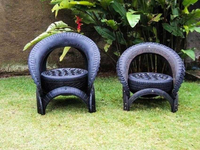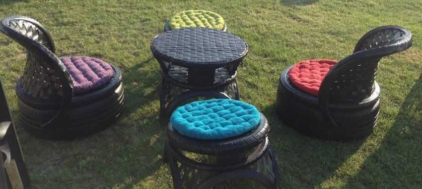 Обтянутые автопокрышки подарили новую жизнь вышедшим из пользования предметам.