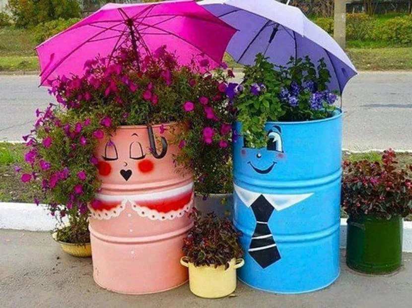 По сравнению с пластиковыми бутылками и старыми автопокрышками металлическая бочка обладает куда более значительным потенциалом, а дизайн бочек на даче отличается редким разнообразием.