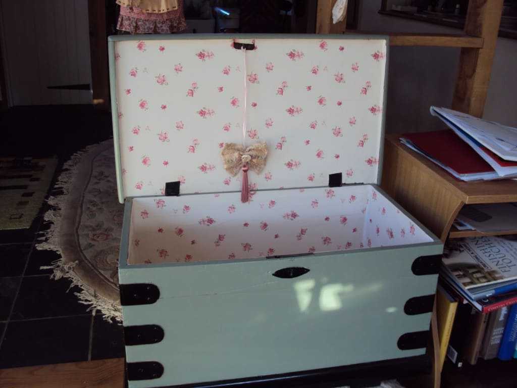 Если у вас уже есть сундук или сундучок, который самое время обновить, искать заготовки не потребуется. Самое простое, что вы могли сделать ранее – это взять красивые обои и обклеить сундук. Здесь не нужна особая техника, но ведь и работа не будет изящной. Сундук просто чуть преобразиться.