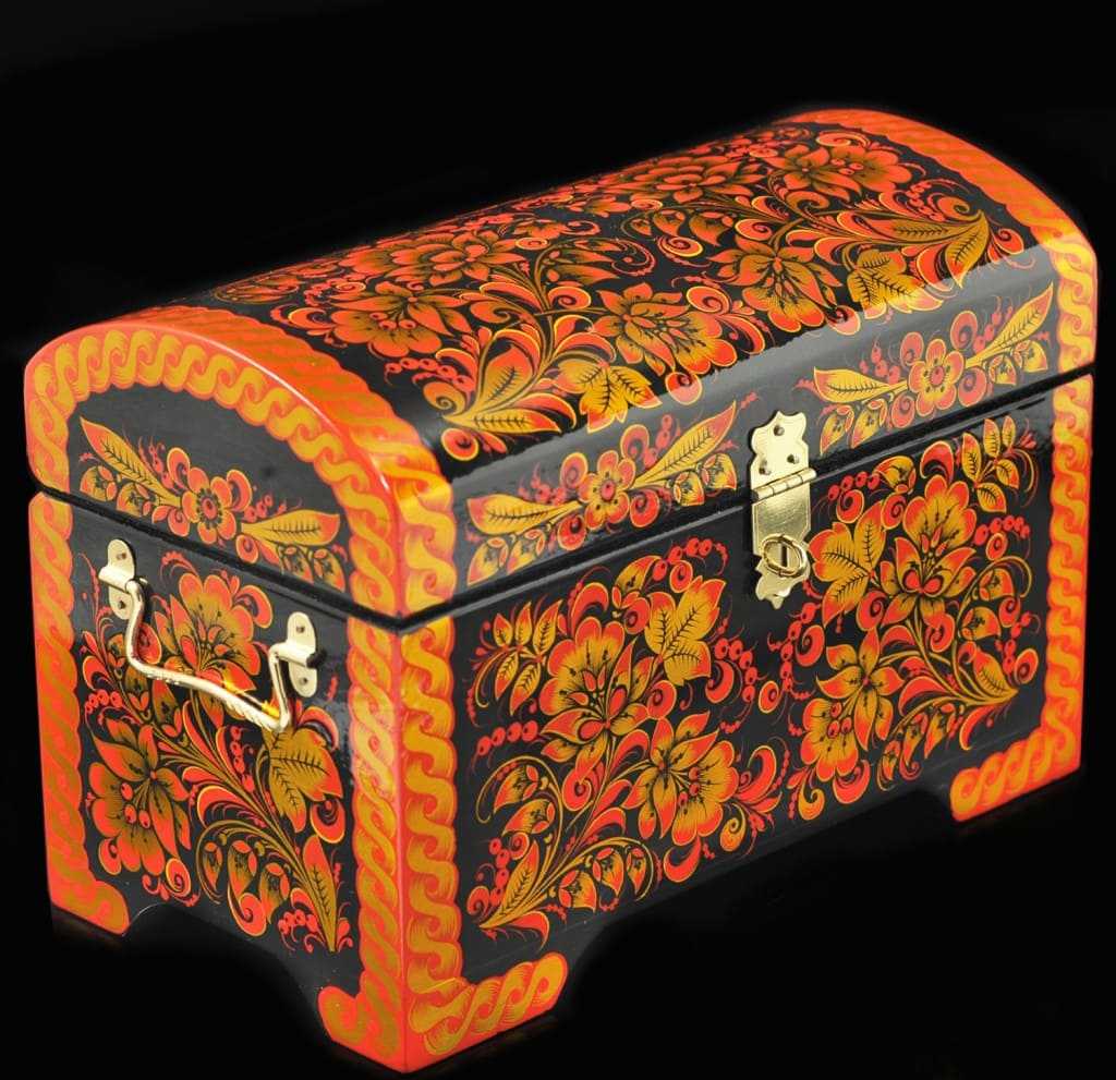 Чтобы знать, как расписать сундук правильно – смотрите на фото, где представлена подробная техника этого процесса: