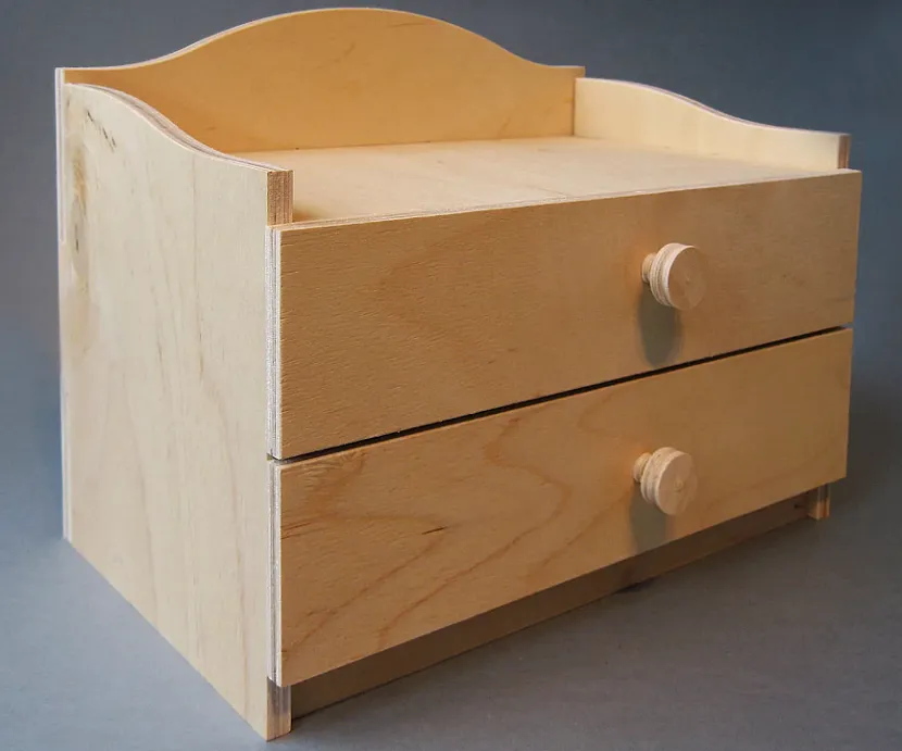 Не менее эффектно смотрятся изготовленные из фанеры комоды и тумбочки. Главное – подобрать подходящий размер, чтобы предметы не выглядели слишком громоздко. Предметы не окрашиваются, так как ЛКМ скроют фактуру и лишат их естественного внешнего вида.