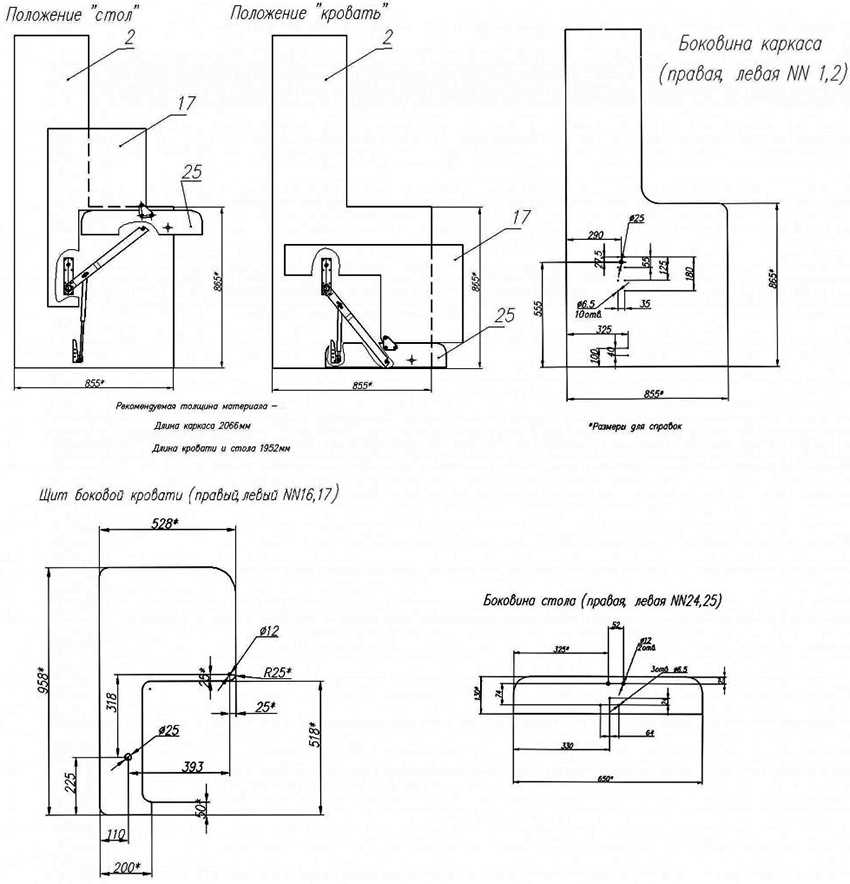 Чертеж детской кровати, которая трансформируется в стол