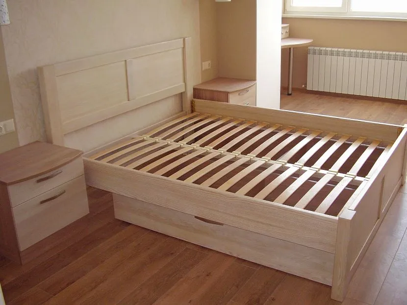 Двуспальная кровать с ламельным ортопедическим основаниемИсточник прорабофф.рф
