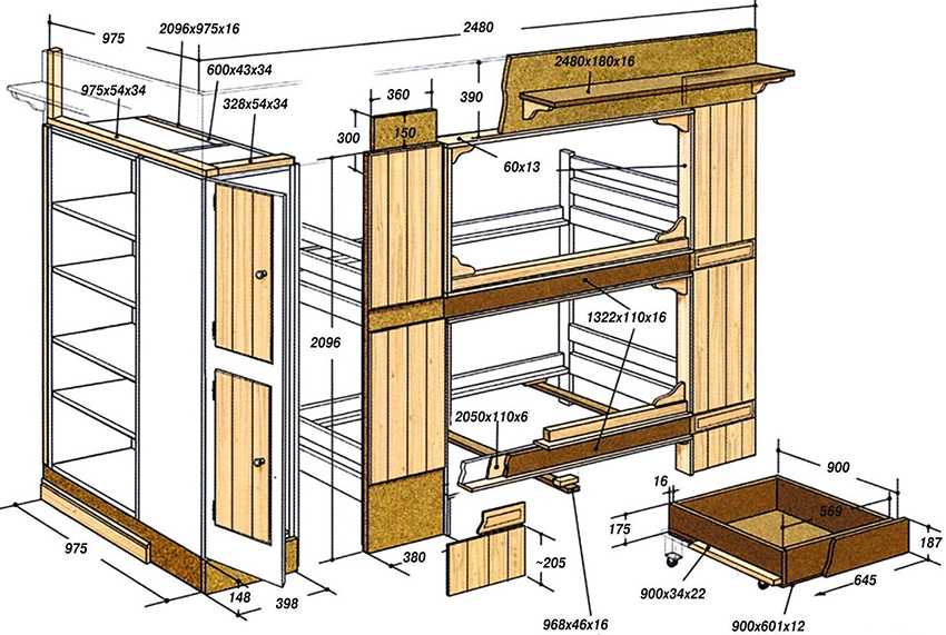 Схема детской кровати Конструкция детской кровати Детская кровать с комодом