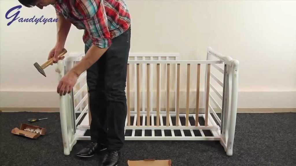 Удобно положив кроватку на бок, нужно собрать все необходимые детали.
