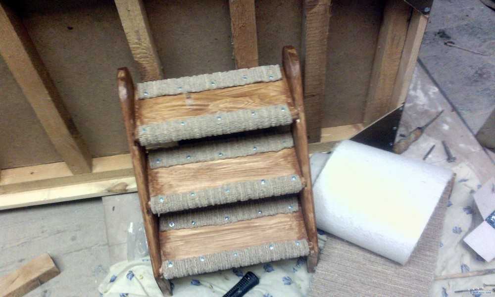 9. Ступеньки тоже нужно покрыть лаком. Также их можно обить ковролином, но это опционально.