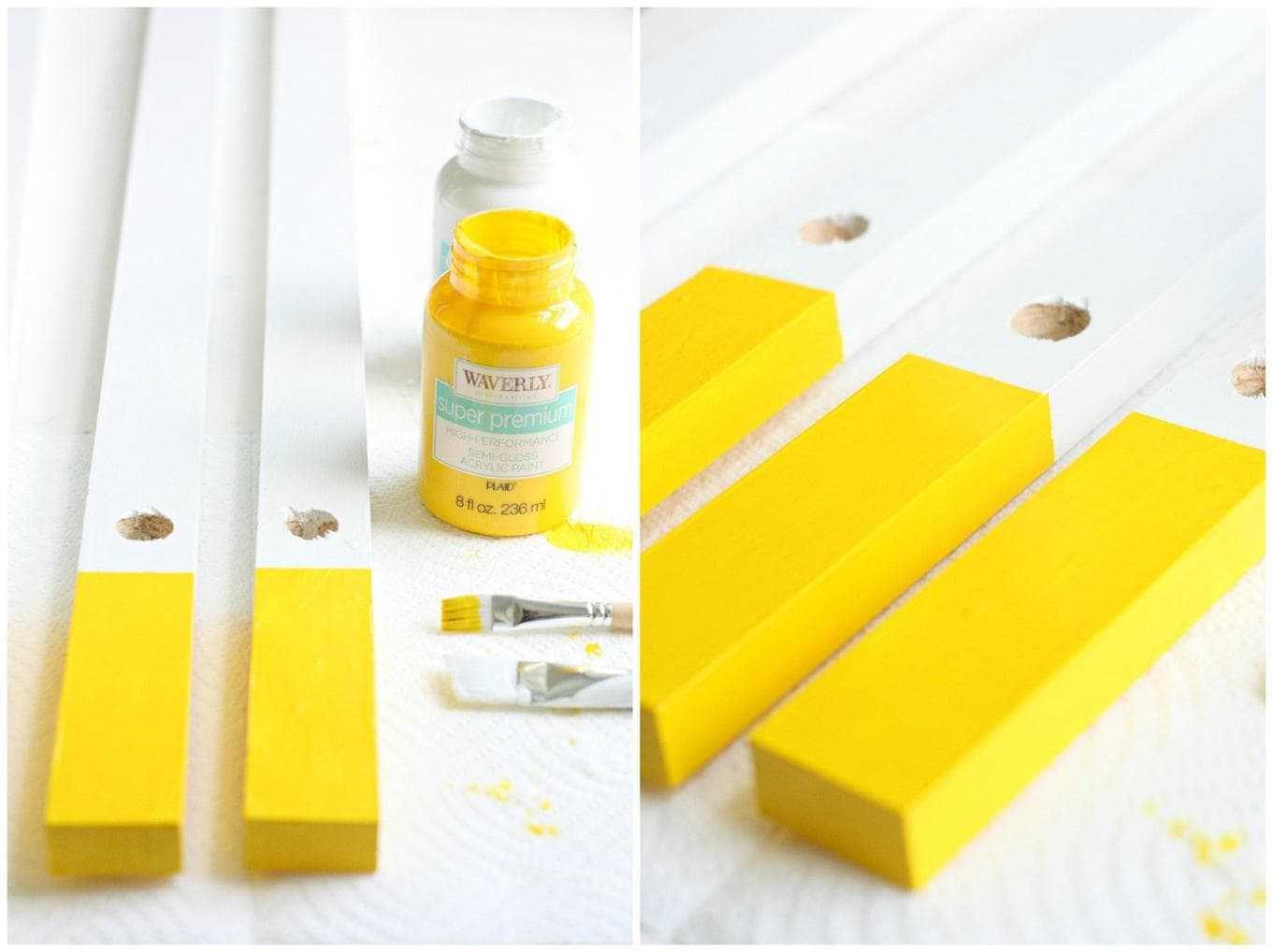Окрашиваем рейки белой краской и оставляем до полного высыхания.