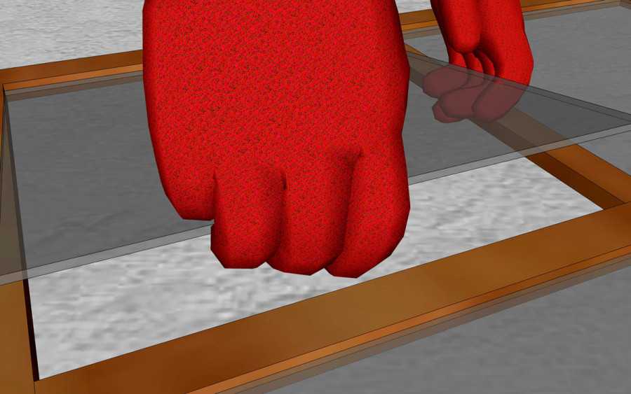 Гвозди забивайте параллельно поверхности стекла, чтобы они не повредили его, попав в угол полотна. Молоток во время удара прижимайте к поверхности полотна и бейте аккуратно.