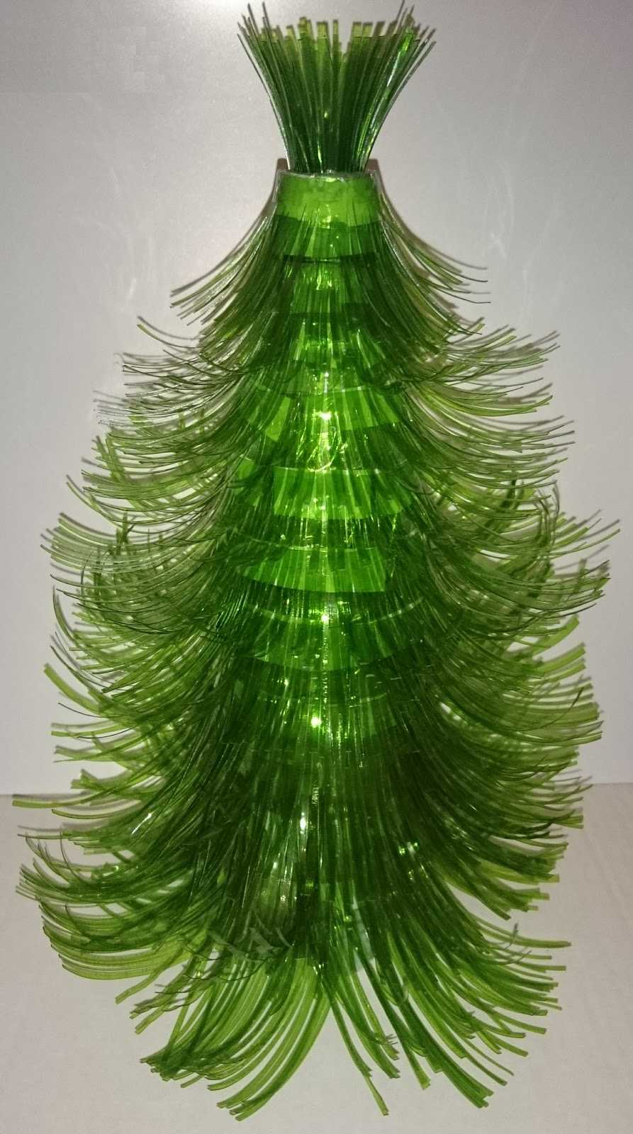 Это бюджетное украшение праздничного стола. Смотрится очень необычно и стильно. Для изготовления желательно использовать зеленые пластиковые бутылки разного диаметра.