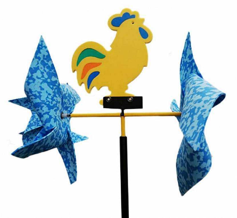 - Флажок. Благодаря его движению, конструкция точно указывает направление ветра. Форма флажка может быть самой простой, однако для декоративности конструкции их делают в виде фигурок людей, животных — птиц, кошек, кораблей, самолетов, трубочистов и т. д.