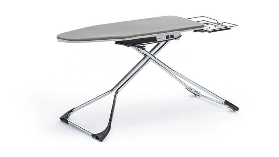 Дорогая, современная гладильная доска. Цена просто не позволяет производителю сделать товар из некачественных материалов. Модель отличается множеством функций. Так, гладильная поверхность может нагреваться. Тут же установлен режим всасывания и высасывания воздуха. Это увеличивает скорость глажки, делает ее комфортнее. Высота может регулироваться, столешница удобных размеров для работы.