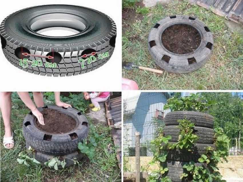 Клубничная грядка из покрышек делается легко. Схема приведена на картинке.