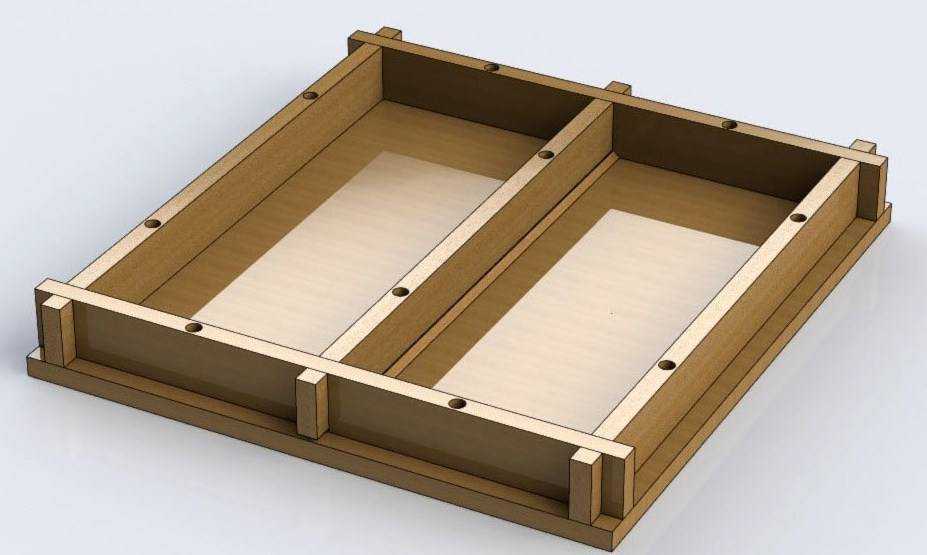 - Из толстого ДСП делают коробку – внутренняя длинна и ширина коробки, высота от дна должны соответствовать аналогичным параметрам изделий которые планируется изготавливать. Все элементы коробки скрепляют оцинкованными прочными саморезами.