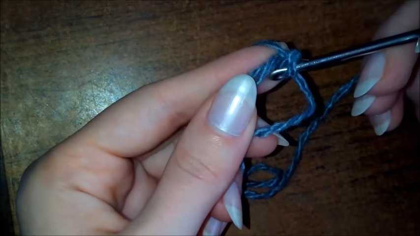 Набираем крючком и голубой ниткой цепочку из 40 в. п. (38 + 2 в. п. п.).