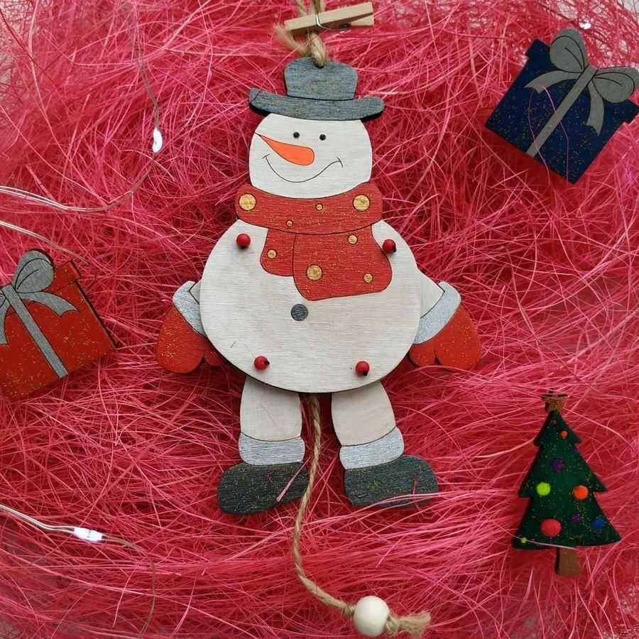 Вот такого красивого и забавного снеговика можно сделать из дерева. Получается он невероятно эстетичный. Также, из дерева можно сделать и другие игрушки.