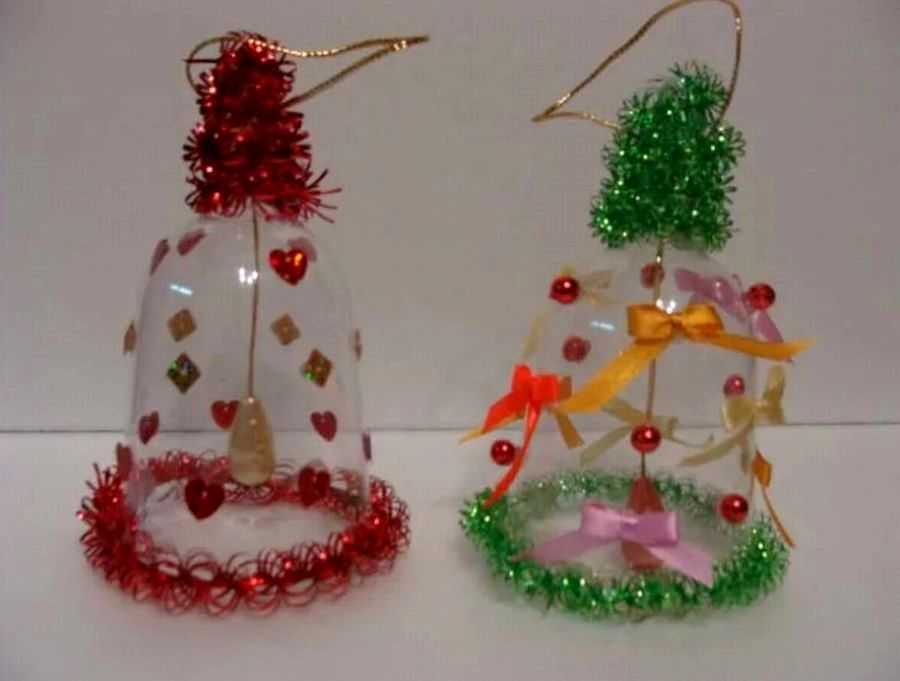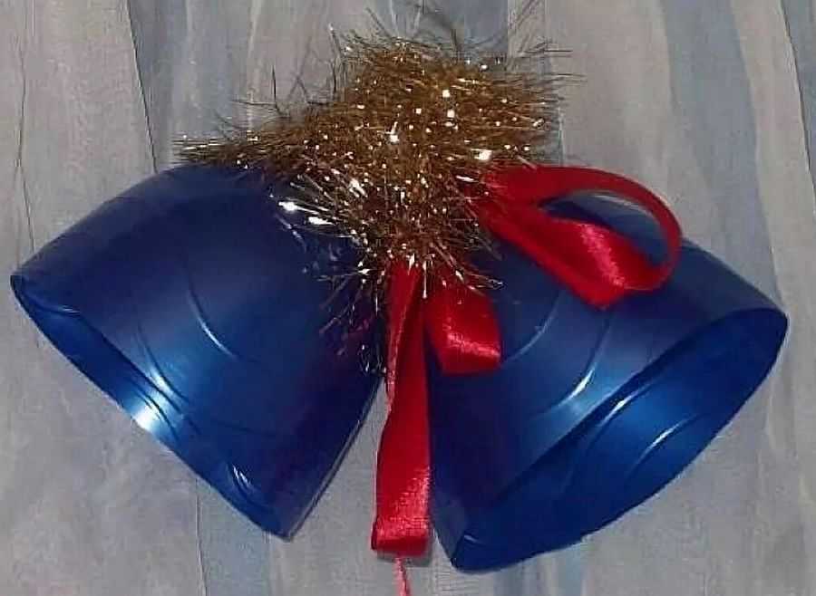 Колокольчики из пластиковых бутылок. Для уличной елки можно взять бутылки побольше, для домашней подойдут и совсем маленькие.