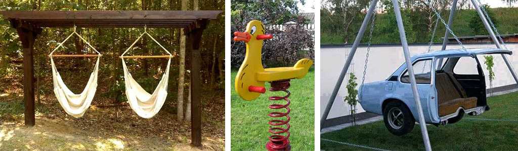 Качели могут быть классифицированы и по другим признакам. Различают следующие виды изделий по типу конструкции:
