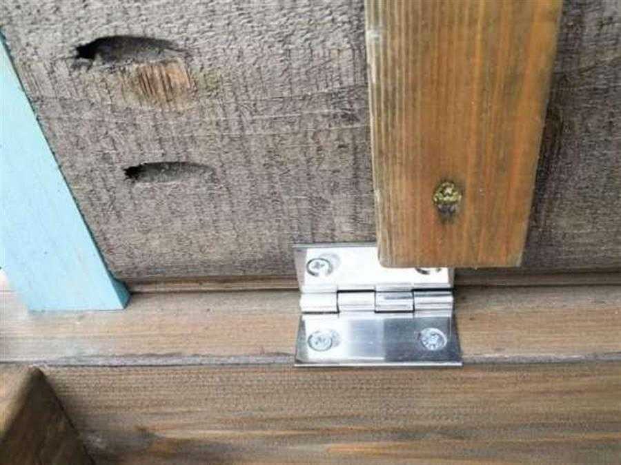 После того, как дверное полотно полностью высохло, к одной из его сторон нужно прикрепить петли. Их также можно изготовить самостоятельно, но гораздо проще приобрести изделия в строительном магазине. С другой стороны дверного полотна следует врезать замок или же прикрепить навес.