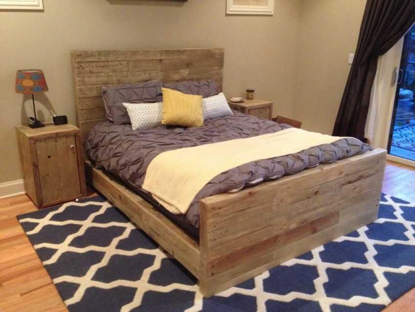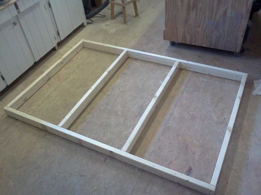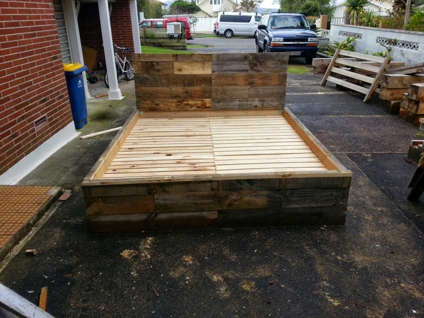 Как сделать. На фанере измерьте и отметьте длину и ширину изголовья – здесь это 80 см в высоту и 92 см в ширину. Вырежьте изголовье. Измерьте и отметьте длину нижней подножки, здесь она 28 см в высоту и 92 см в ширину. Вырежьте подножку. Измерьте и отметьте длину и ширину спинки, здесь 80 см в высоту и 185 см в длину. Отрежьте часть спинки. На настольной пиле разрежьте доски на полосы шириной 5 см, это для каркаса матраса. Затем отрежьте две штуки по длине, чтобы они соответствовали длине изголовья и изножья. Отрежьте поперечины опоры матраса на ширину изголовья минус 8 см. Вырезаем 8 крестовин. Равномерно разложите поперечины, расположив по длине боковин. По центру каждой поперечины просверлите отверстия под шурупы. Приклейте и прикрутите поперечины к передней и задней панели. Прикрутите изголовье к спинке, затем подножку к спинке.