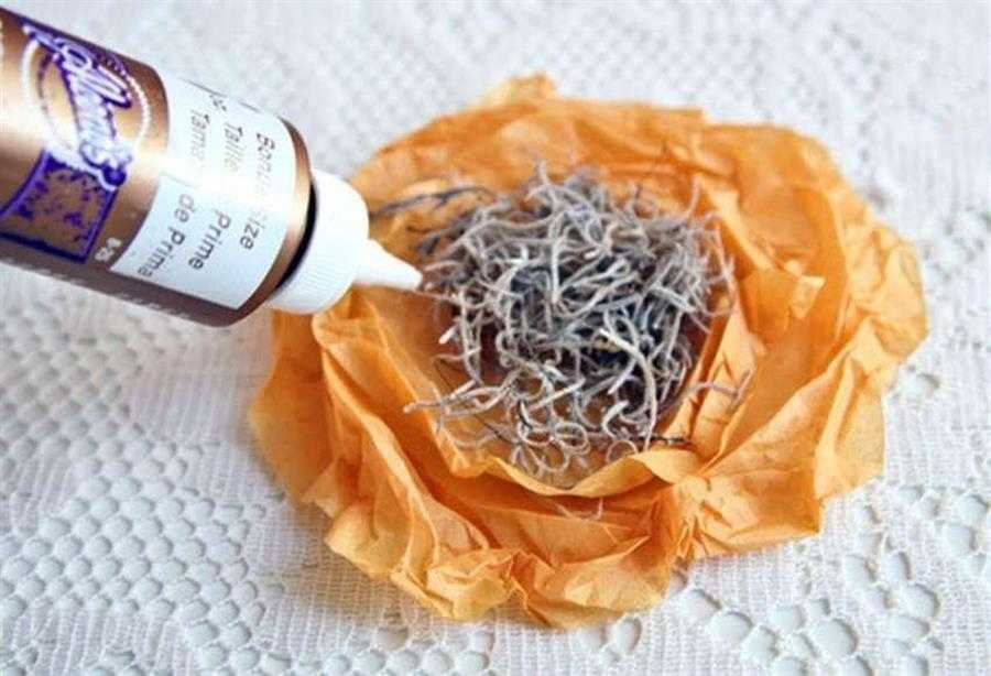 Для фиксации бумажных лепестков необходимо обзавестись прозрачным клеем. Некоторые мастера предпочитают работать с обычным клеевым составом ПВА.