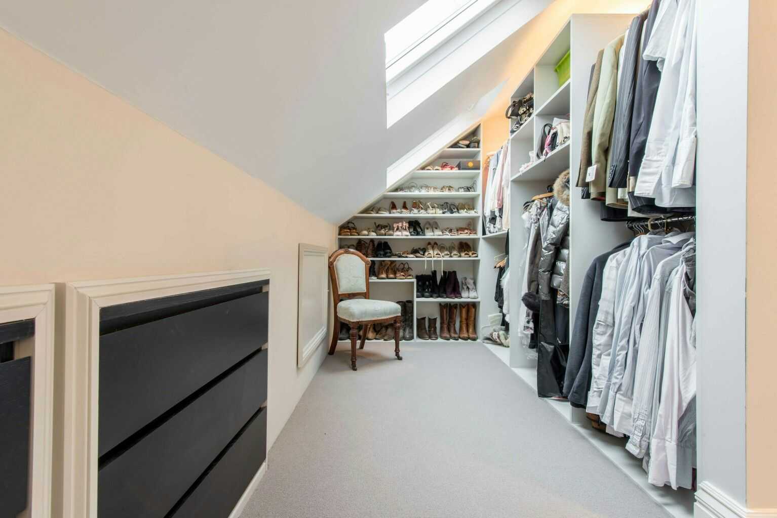 Вариантов хранения вещей несколько, поэтому гардеробная на чердаке может превратиться в уютное функциональное пространство. При выборе необходимо учитывать особенности дизайна комнаты.