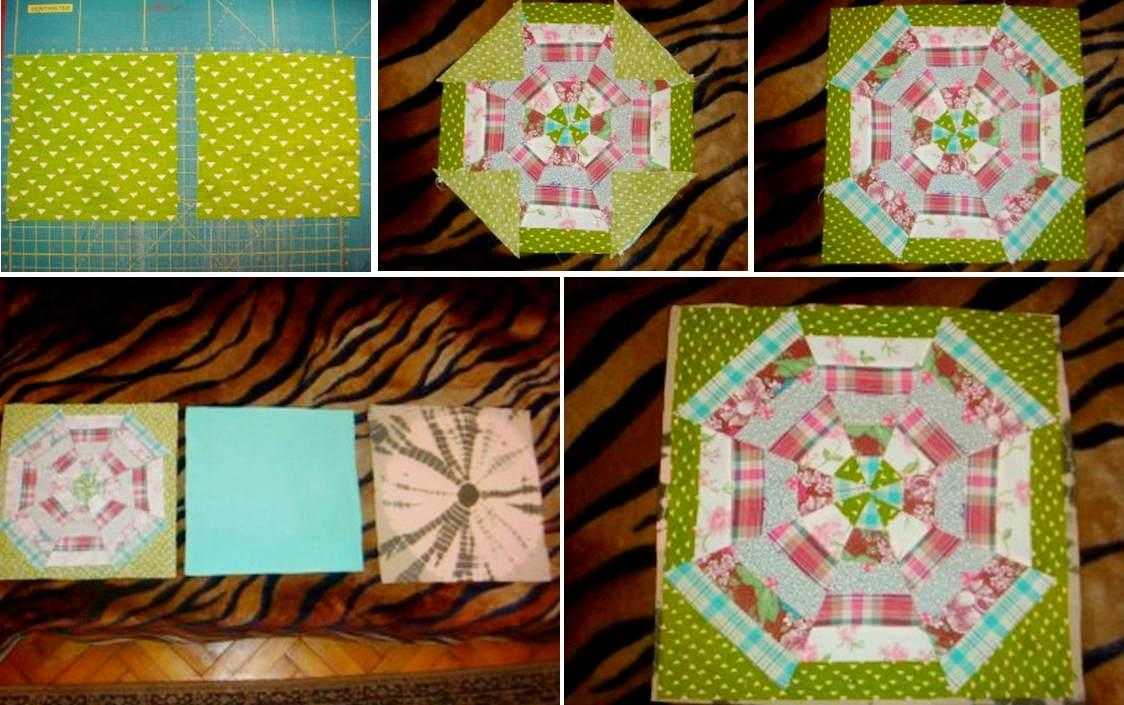Еще один интересный вариант – “пицца”. Он не нуждается в шаблоне, можно брать лоскуты любых очертаний и воплотить любые самые смелые идеи. Детали необходимо в произвольном порядке наложить на подготовленный отрез, который будет использован в качестве основы.