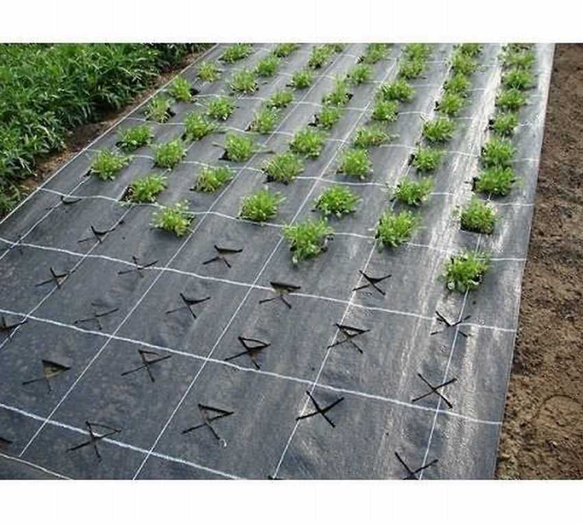 Чтобы не попадали семечки бурьяна по ветру, грядки накрывают вот такой тканью.