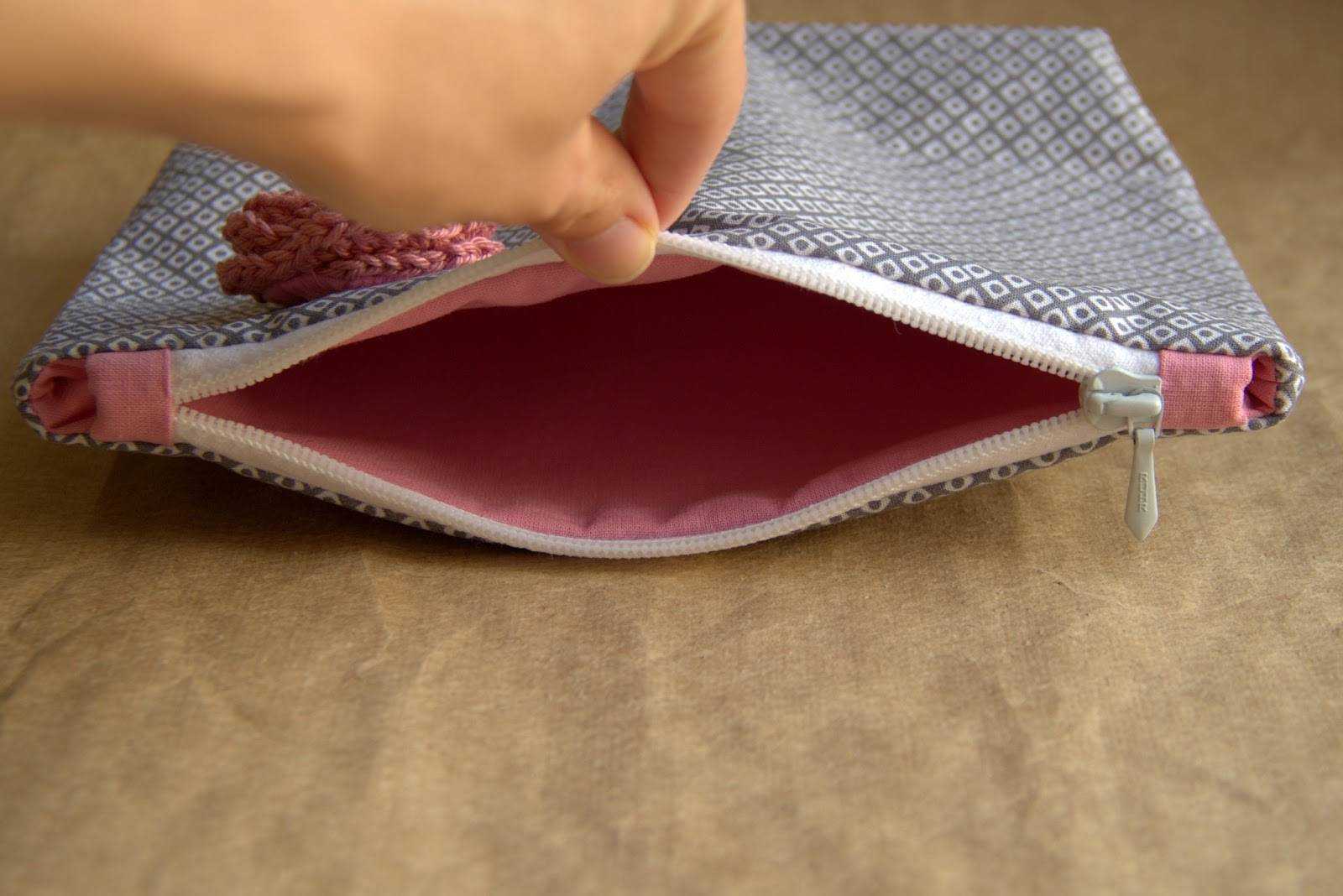 Подкладка играет особую роль в изделии. С ее помощью основной материал не разваливается, и косметичка способна прослужить гораздо больший срок. Она обычно пришивается после молнии.
