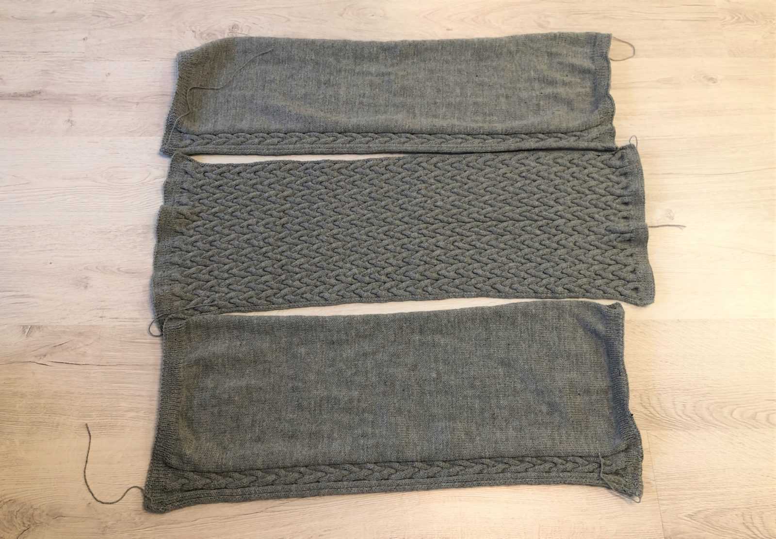 Сборка. Детали растянуть, увлажнить и дать высохнуть. Лицевую и изнаночную стороны сшить, при этом с одной стороны оставить средние 30 см. открытыми для застежки-молнии. Вшить застежку-молнию для трикотажных изделий.