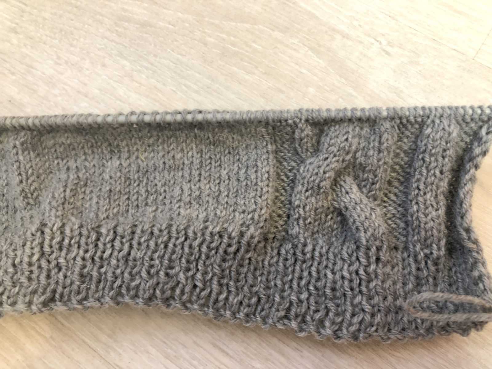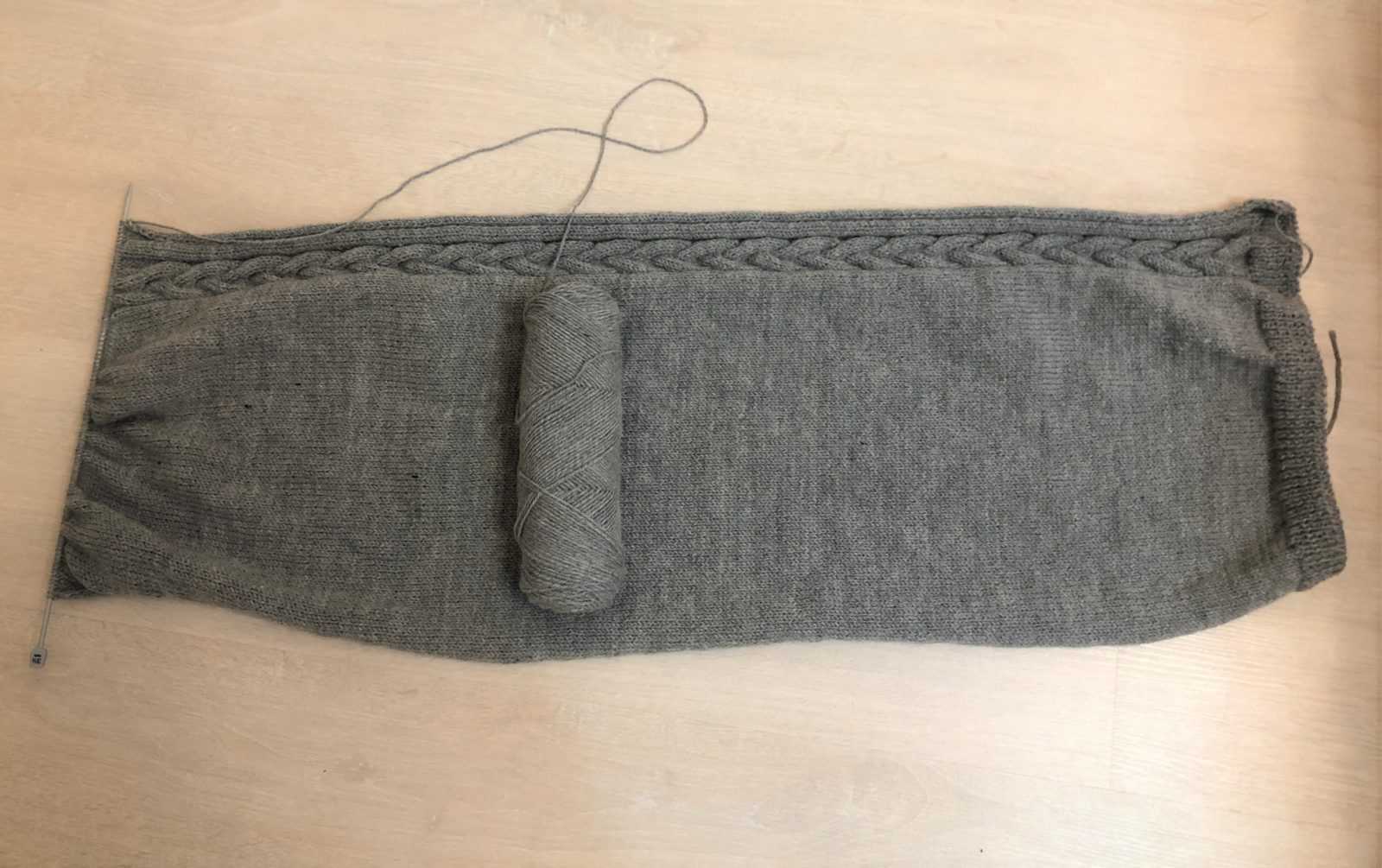5 рядов (изнаночный после косы и еще 4 по рисунку) и перехлест косы 2. 4 лицевых. 4 петли снять на дополнительную спицу и оставить за работой. 4 лицевых и 4 петли лицевыми с дополнительной спицы. Изнаночный ряд – по рисунку. Еще 4 ряда.