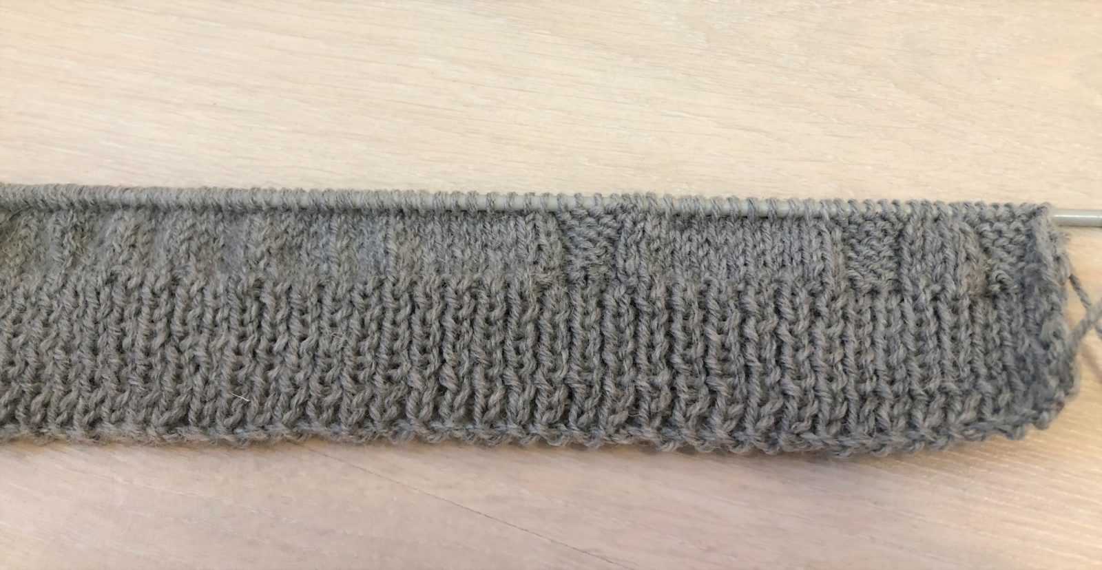 На изнаночной стороне вязать по рисунку. Всего 6 рядов (3 лицевых и 3 изнаночных).