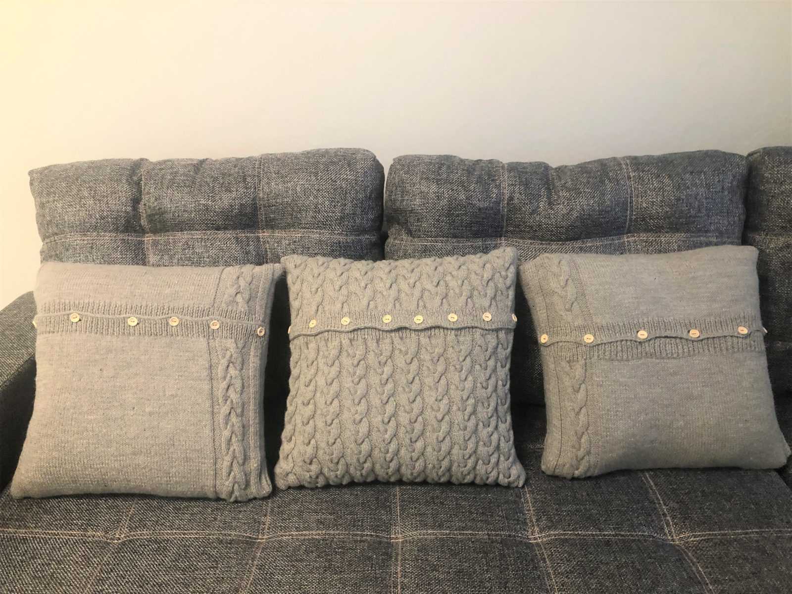 Простая вязаная подушка спицами: мастер-класс