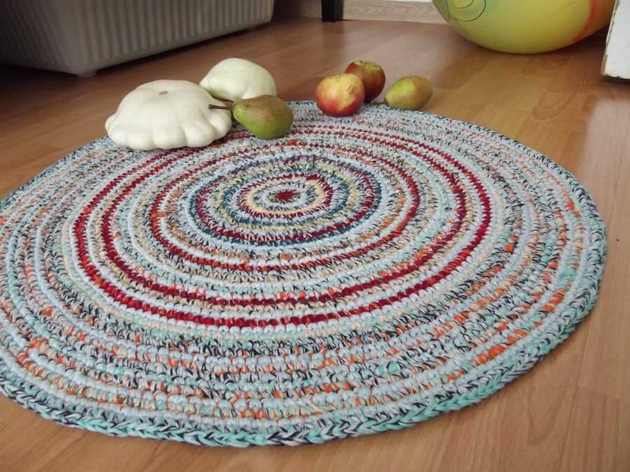 Вязаные – коврики прямоугольной, круглой или овальной формы, связанные крючком или спицами. Чтобы придать им объем, в качестве материала используют не только нитки, но и полоски из любой не сыпучей ткани.