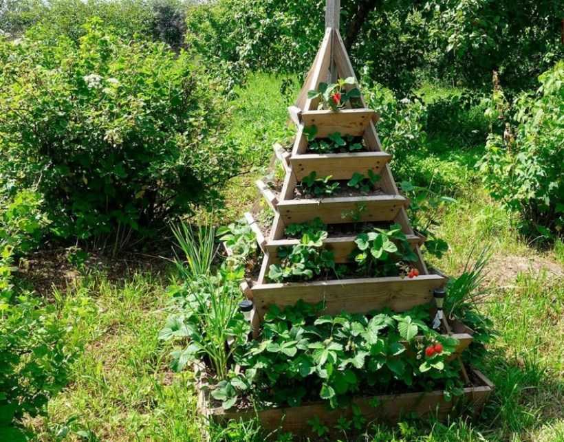 Если участок небольших размеров, то хорошим решением будет использование вертикальных грядок. Они не требуют много места, просты в исполнении и не доставляют хлопот в процессе выращивания ягодной культуры.